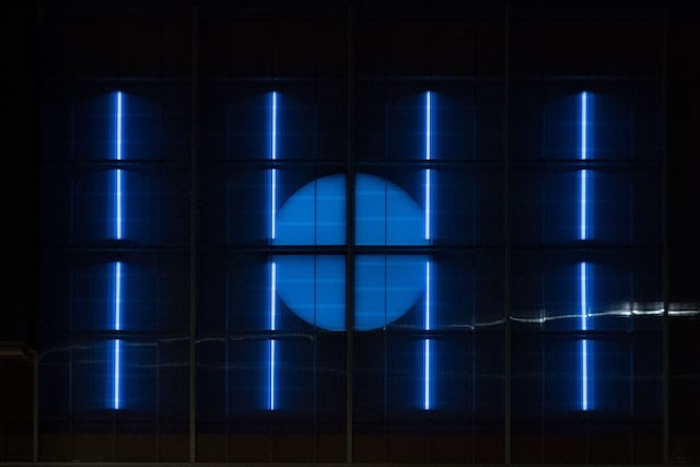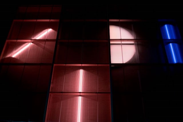 Vindhastighed, luftfugtighed og temperatur-inputs fra vejrstationen på taget, samt tidspunktet på dagen, året og bevægelsessensorer i bygningen bestemmer farver, rytme og armatur formationer, således at lysende elementer er i konstant forandring.